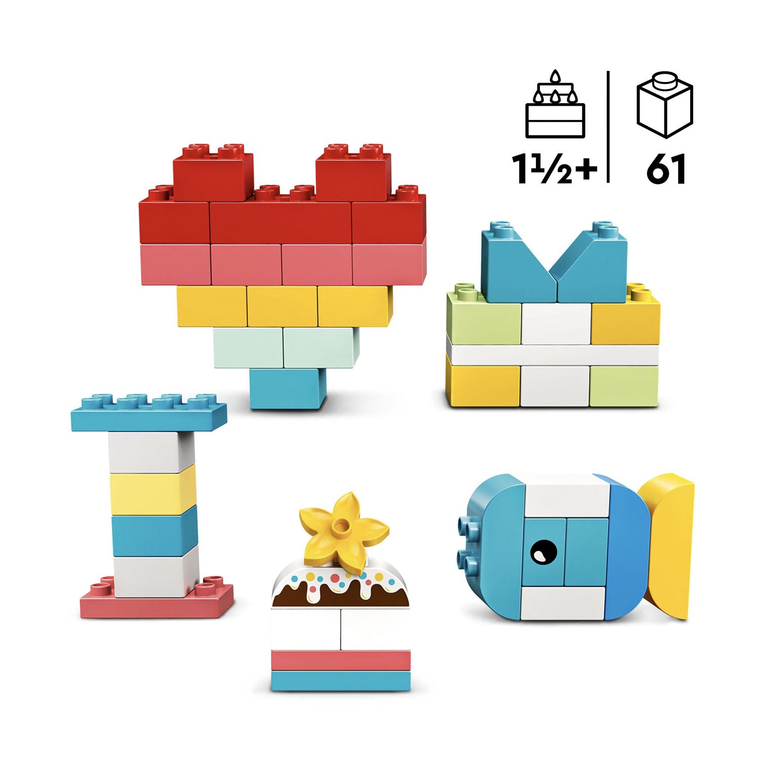 - Colorful brick assortment for creative playtimes – With 15 models and endless free-building fun, the LEGO® DUPLO® Classic Heart Box (10909) is bursting with possibilities for toddlers