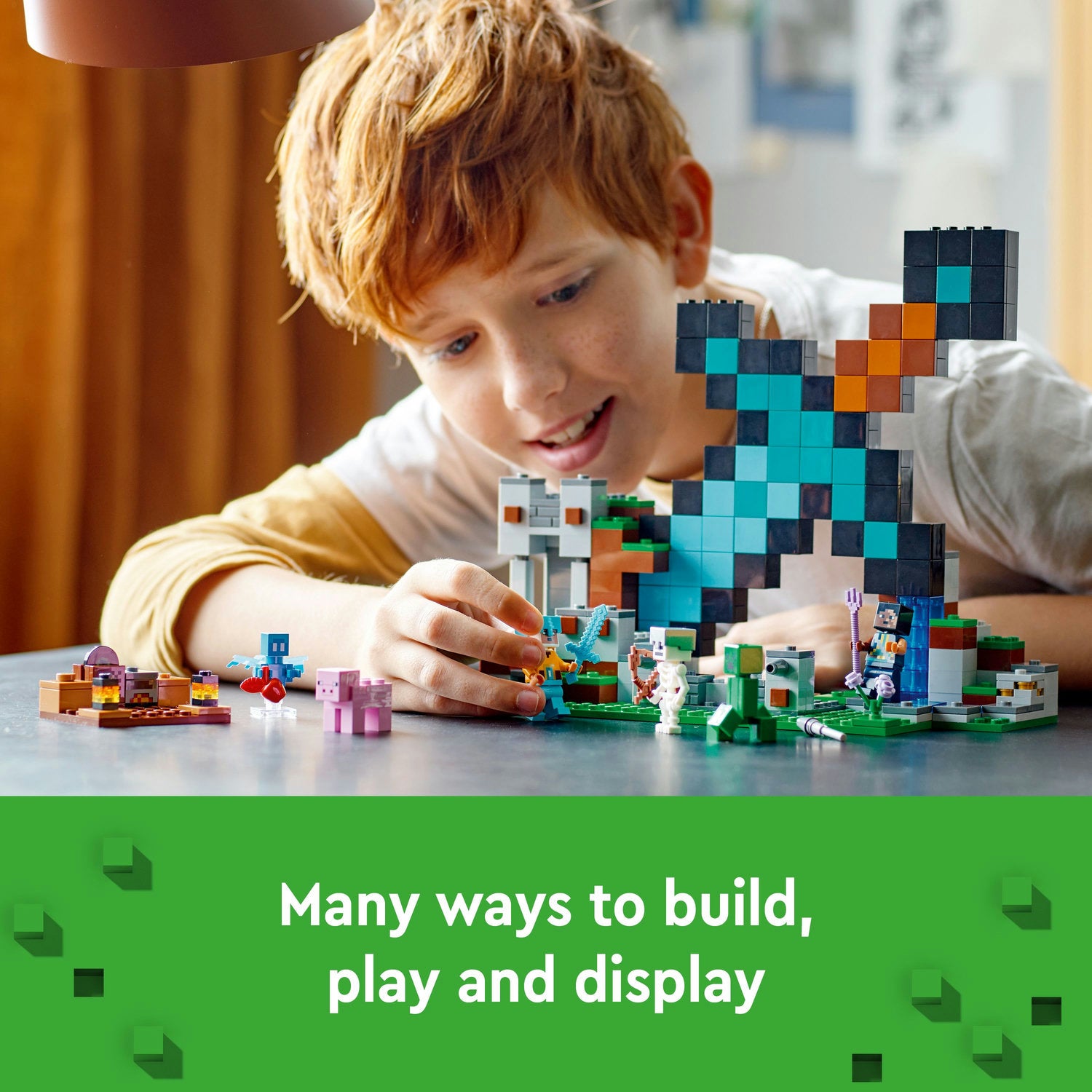 - Diamond-sword playset – LEGO® Minecraft® The Sword Outpost (21244) inspires adventures around an up-scaled recreation of the game’s most precious weapon