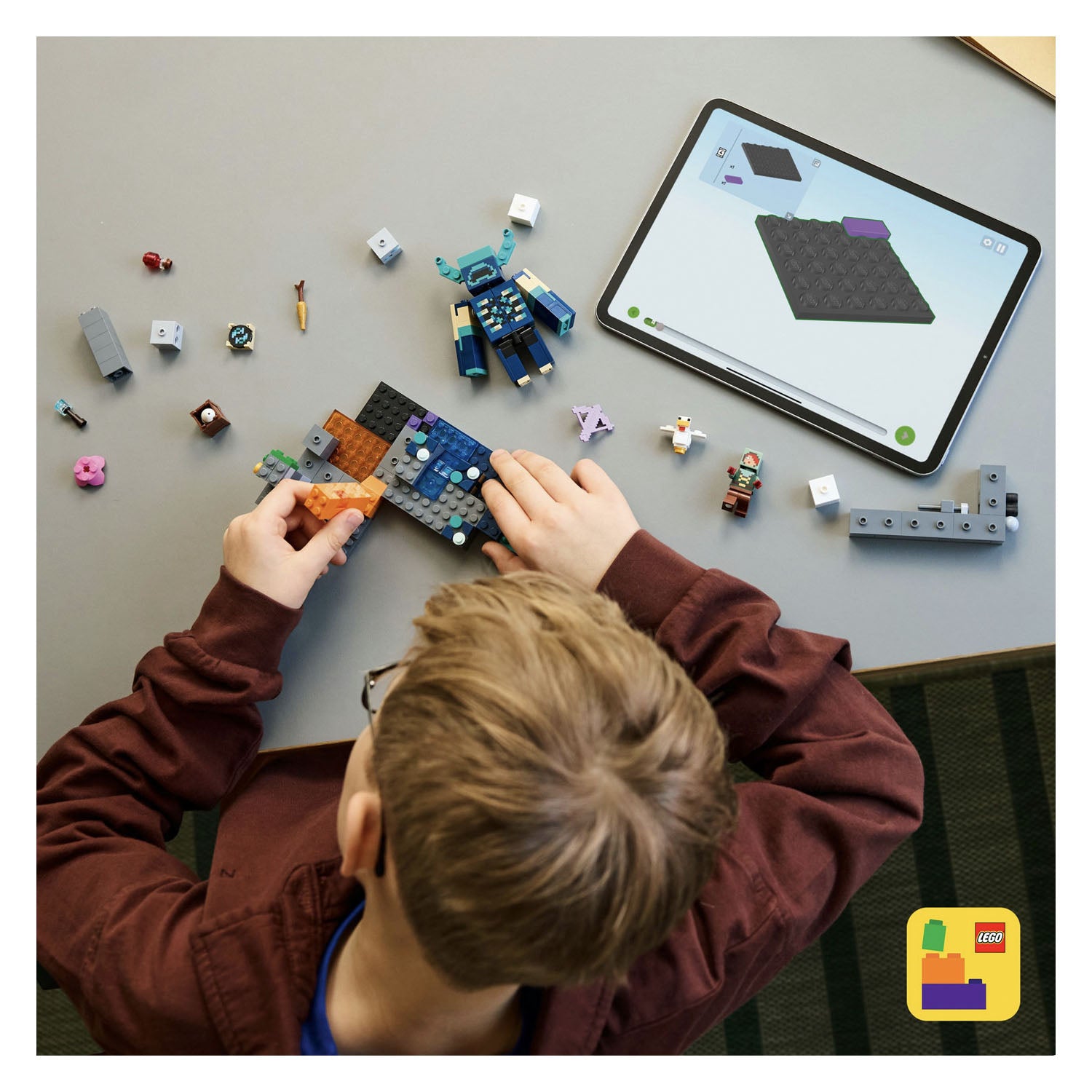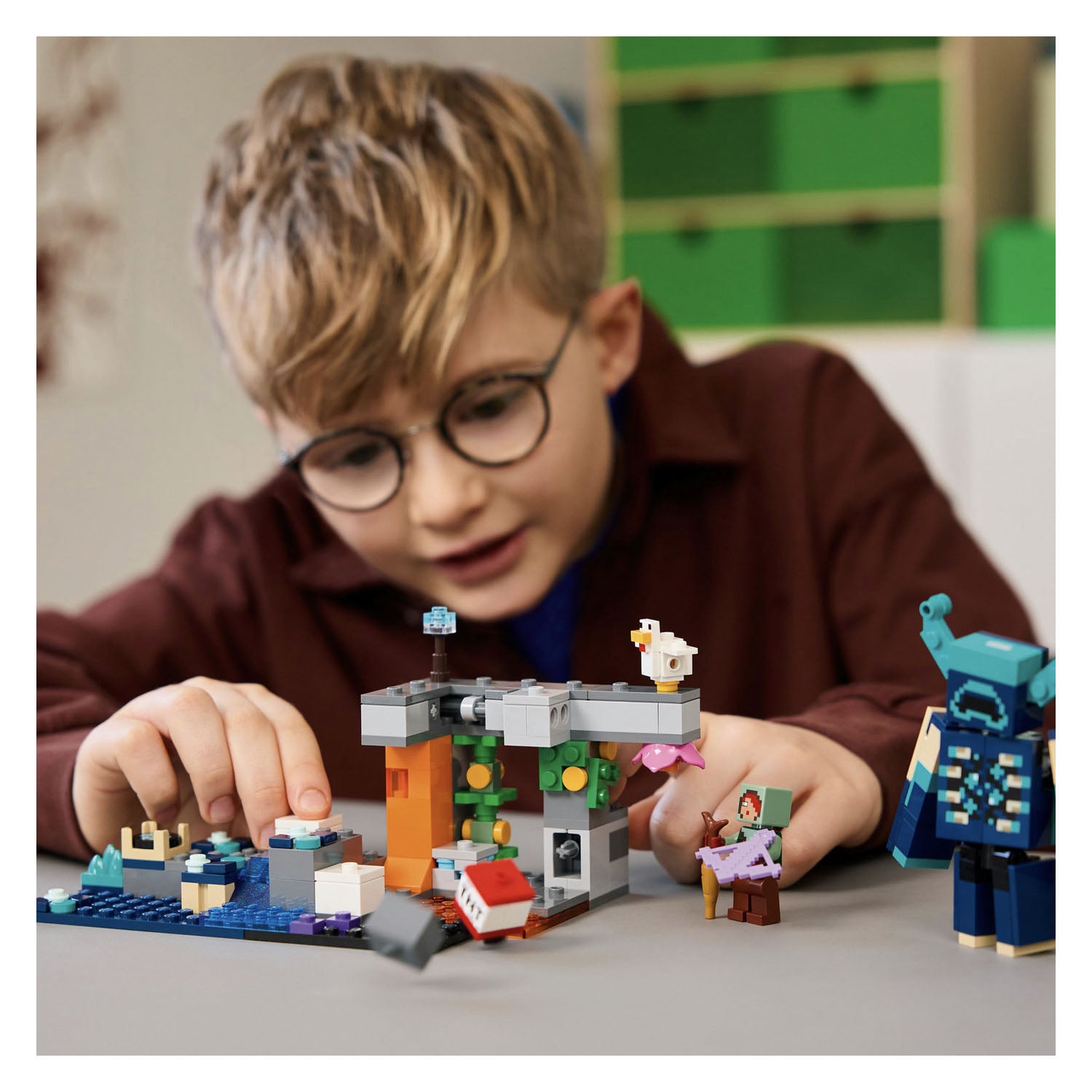 - Minecraft® toy figures – This LEGO® set includes a Minecraft Silent Ranger minifigure, a Minecraft chicken and a large, buildable Minecraft Warden toy with posable head, arms and legs