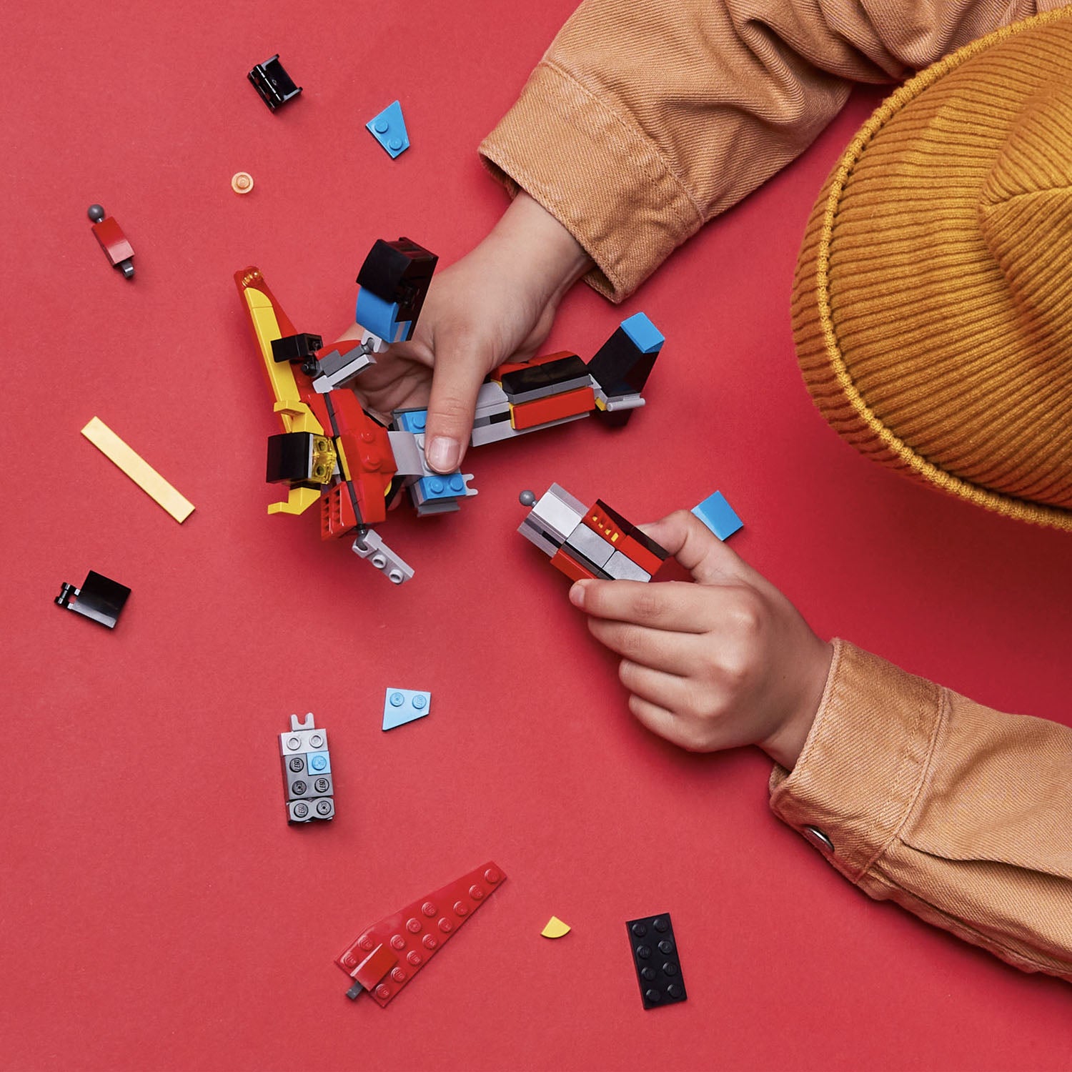 This LEGO Creator 3in1 building set provides 3 different playtime experiences for kids to savor. They can construct the posable Super Robot, which has a set of wings on the back, then rebuild it into a posable mecha dragon or a jet plane with adjustable wings.