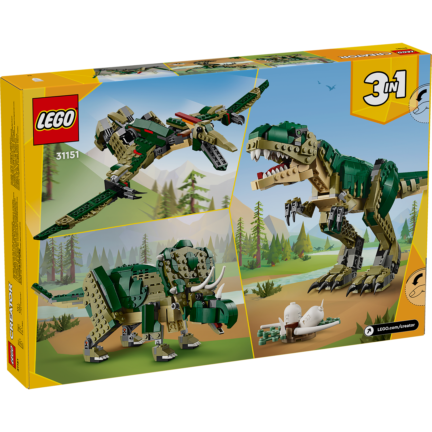 - 3 dinosaur toys for kids in 1 set – LEGO® Creator T. rex dino playset lets boys and girls aged 9+ build and rebuild 3 different animal toys using the same set of bricks