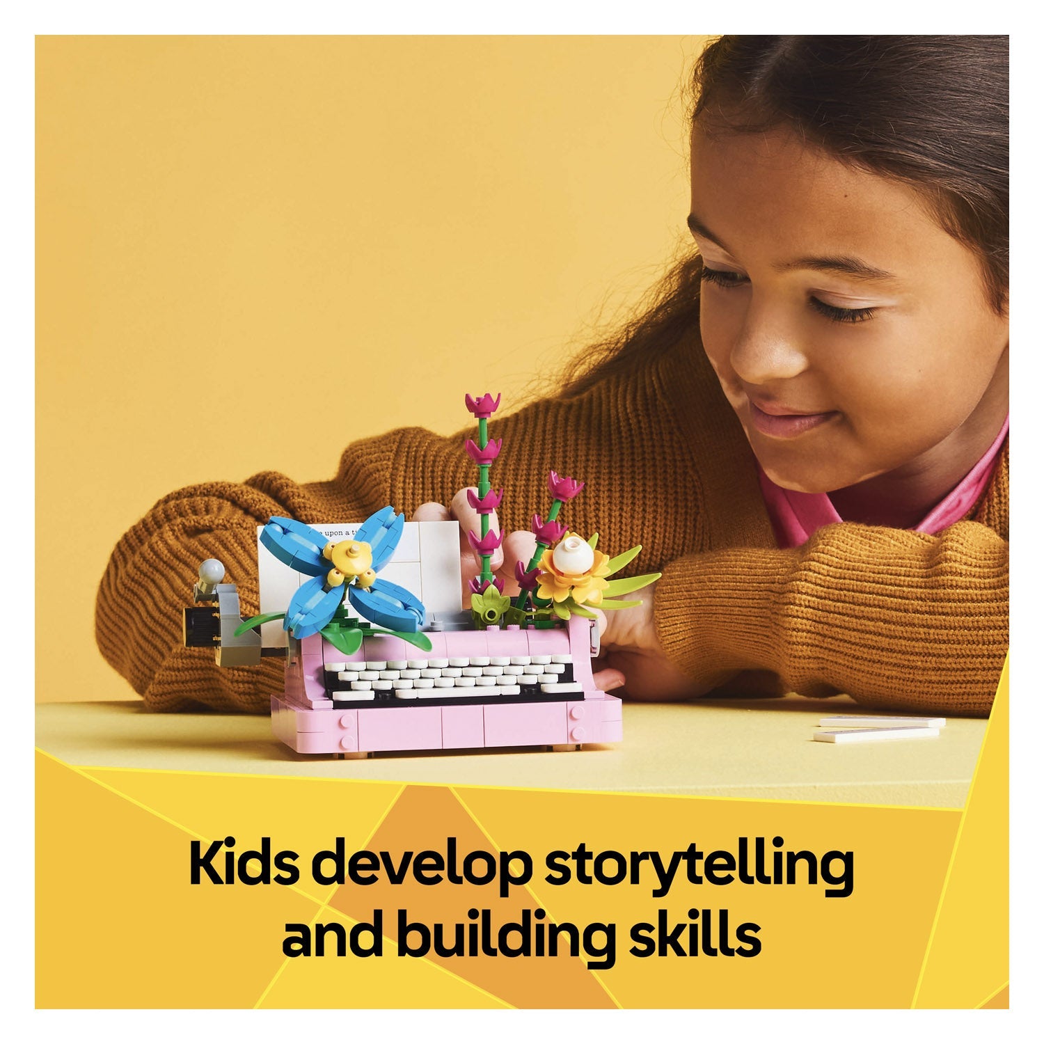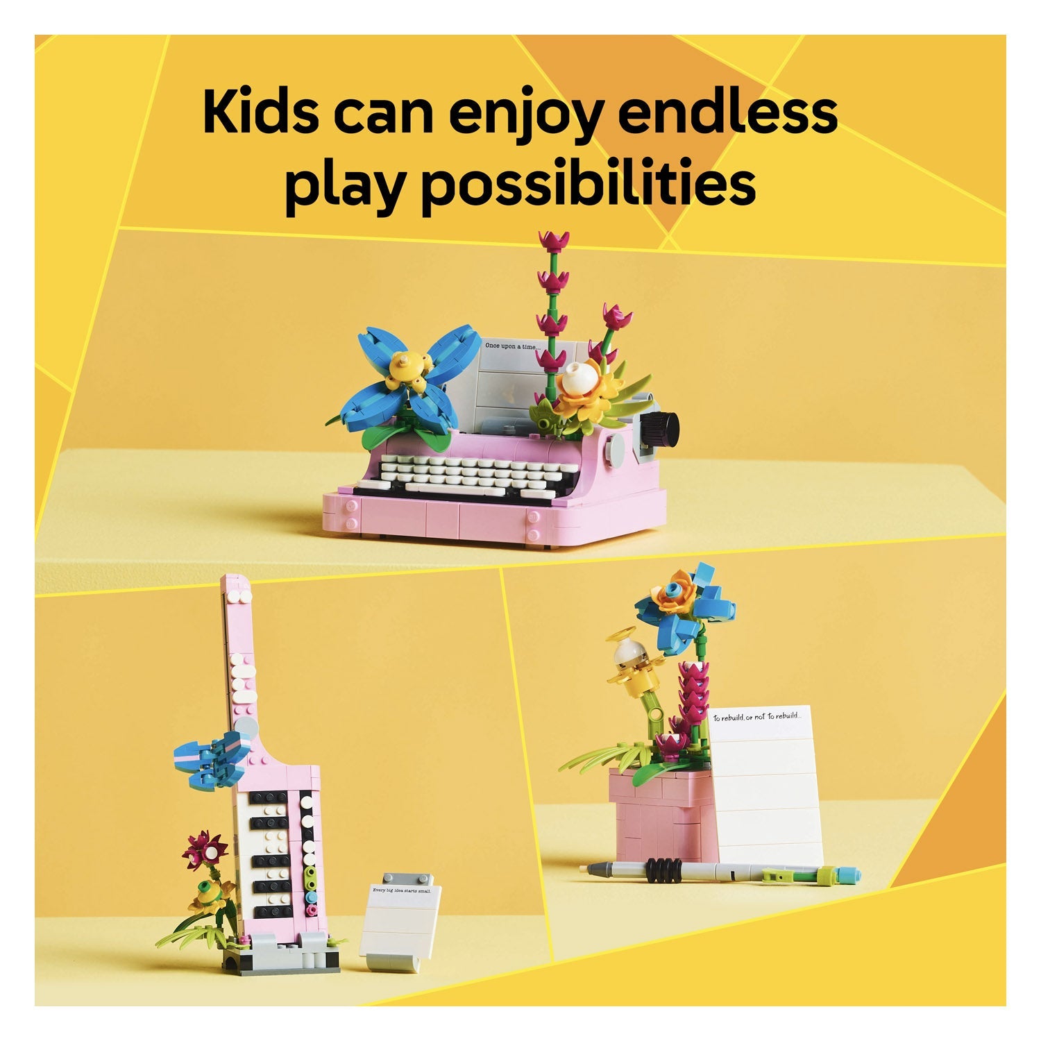 - 3 LEGO® flower set building options in 1 box – Creator 3in1 Typewriter with Flowers toy playset lets kids aged 8 and up build and rebuild 3 different models with the same bricks