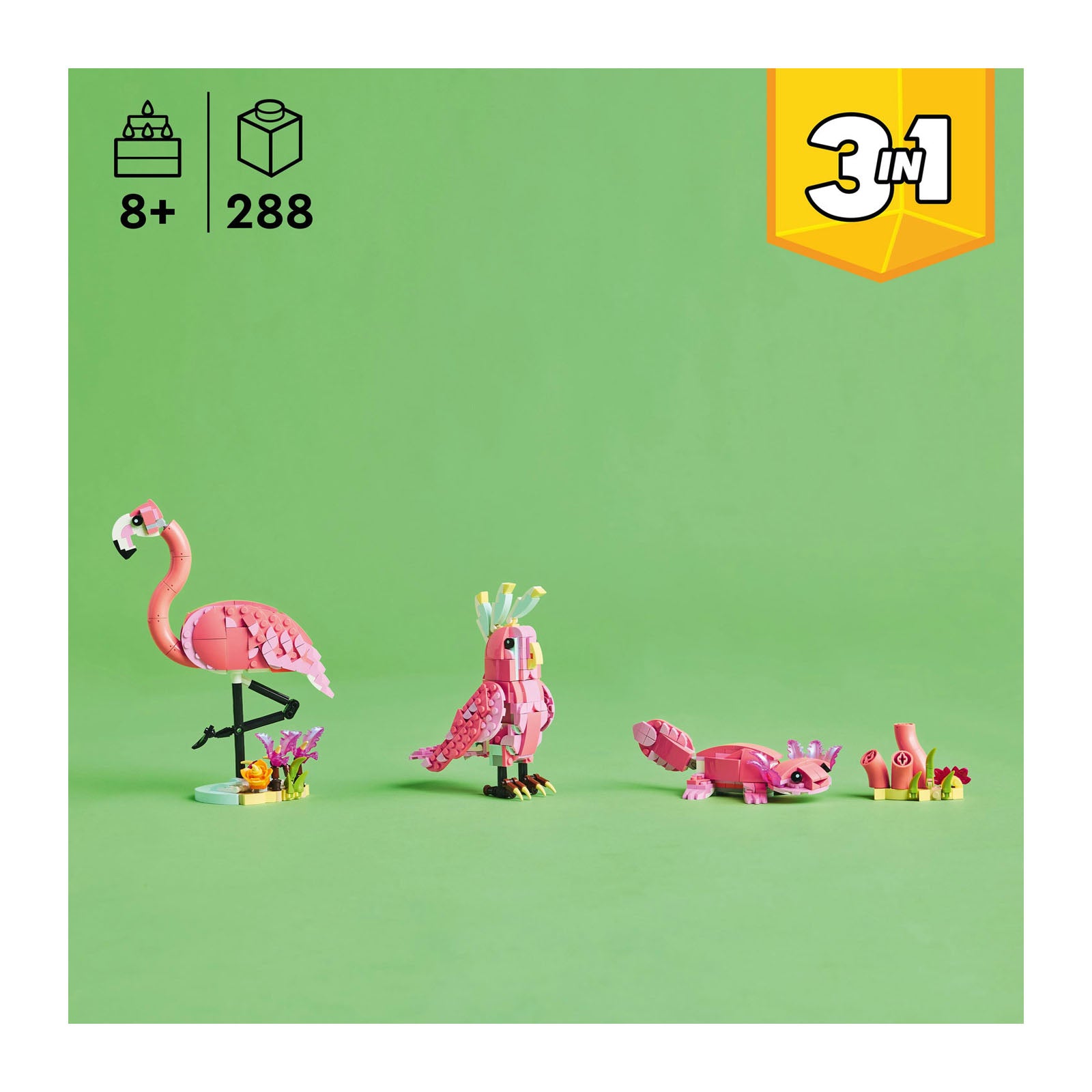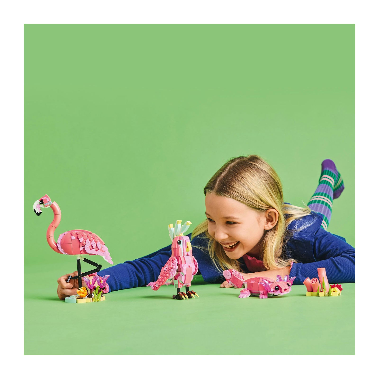 - 3 wild animal building options in 1 box – The LEGO® Creator 3in1 Wild Animals: Pink Flamingo toy set lets girls and boys aged 8 and up build and rebuild 3 different animal figures with the same bricks