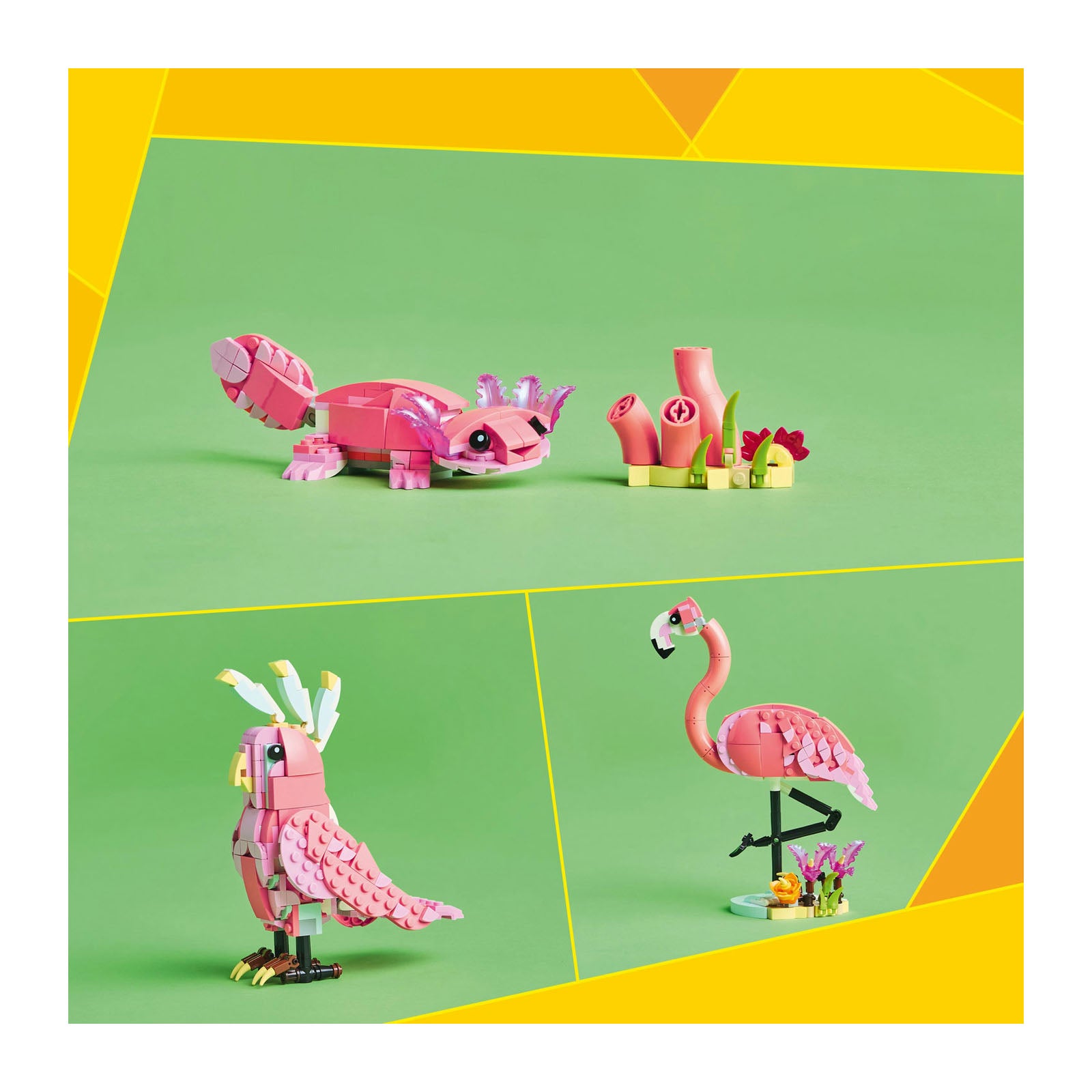 - Endless play options – Kids can role-play stories with 3 different animal models (note that models cannot be built simultaneously): a pink flamingo toy, a pink cockatoo toy or a pink axolotl toy