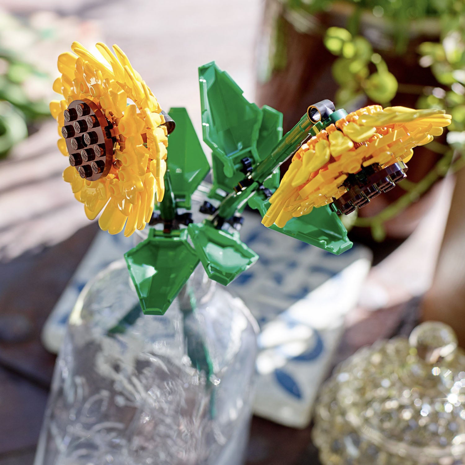 - Build a sunflower display – Create a display piece for any room with the colourful LEGO® Sunflowers (40524) building kit. Includes 2 sunflower blooms with adjustable green stems and leaves