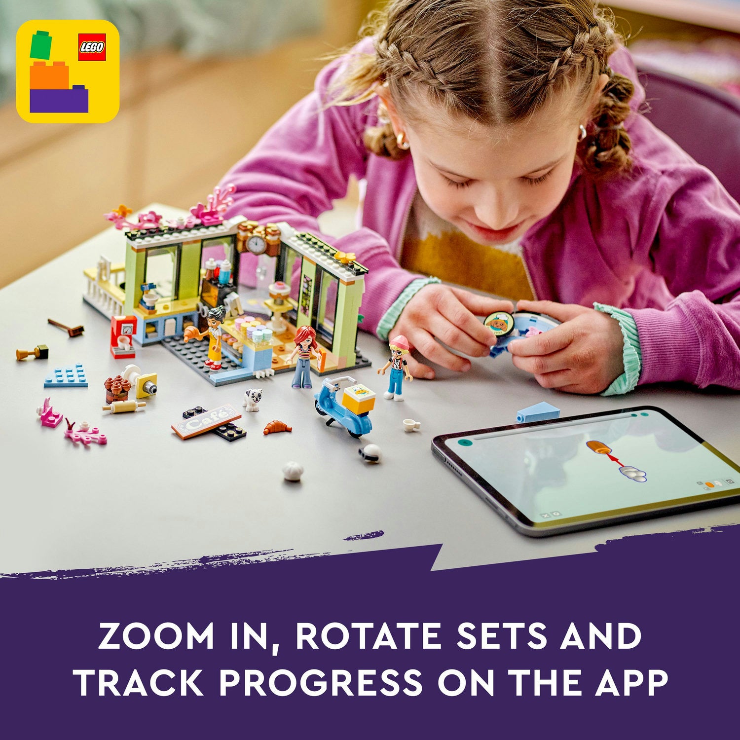 Here’s a sweet gift idea that lets kids aged 6+ create their own friendship stories. The LEGO® Friends Heartlake City Café toy for kids (42618) features a patisserie-style café and comes with 3 LEGO Friends mini-dolls and a dog figure. There’s also a host of café-themed accessories in the building set to fuel imaginative play for girls and boys. This social development toy tells the story of Paisley and Olly as they visit their favorite café in Heartlake City. Beatriz sorts macarons and bakes cakes in the kitchen, where there’s a toy oven and coffee machine. Then she helps the friends choose treats to enjoy outside before packing macarons into the box, ready to make deliveries on her scooter. Discover more birthday gift ideas for kids in the LEGO Friends universe, where there are lots more friendship stories to uncover (sets sold separately). This set comes with the LEGO Builder app for intuitive building. Here kids can zoom in and rotate models in 3D, save sets and track progress.