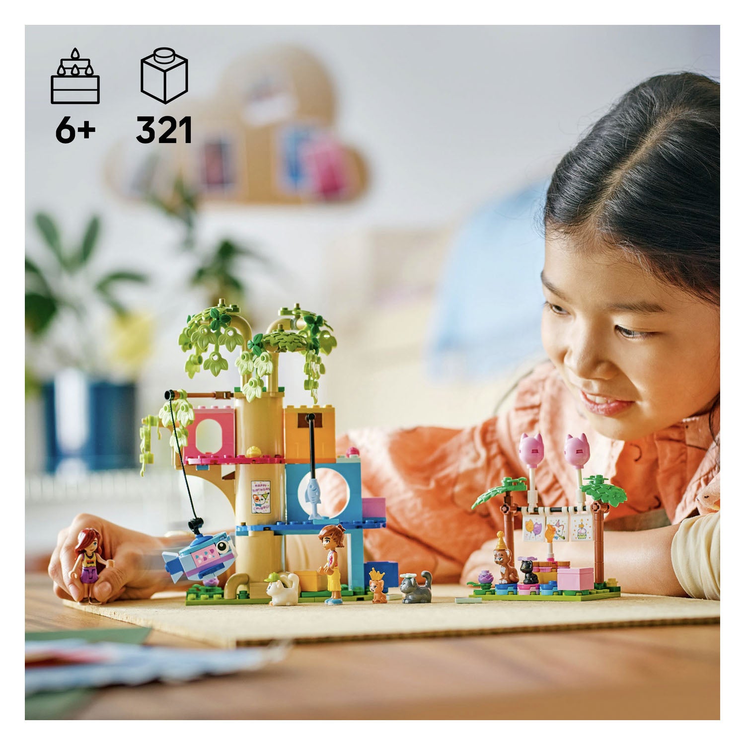 - A building kit for cat-loving kids – This LEGO® Friends Cat Birthday Party & Tree House toy for girls and boys aged 6 and up comes with 2 minidolls and 5 cat figures for imaginative play