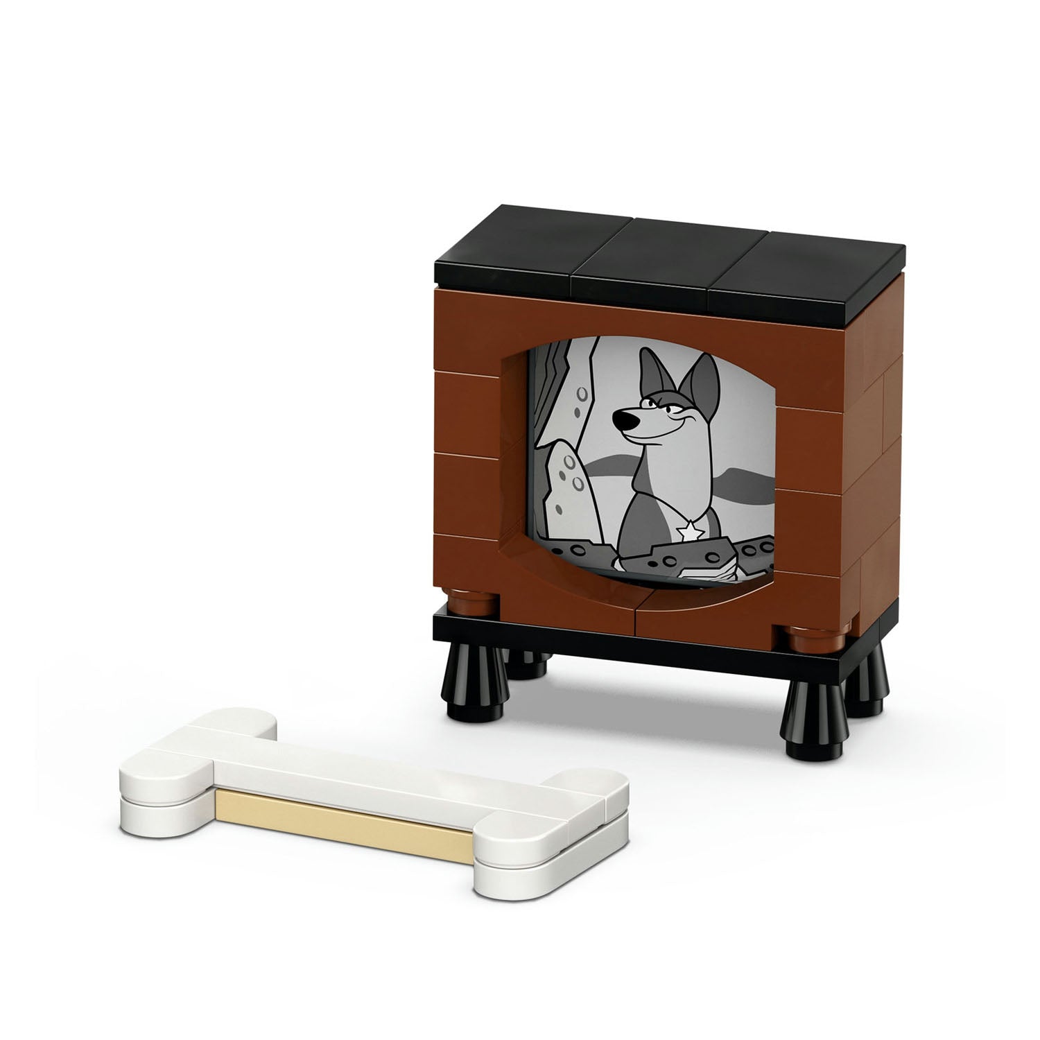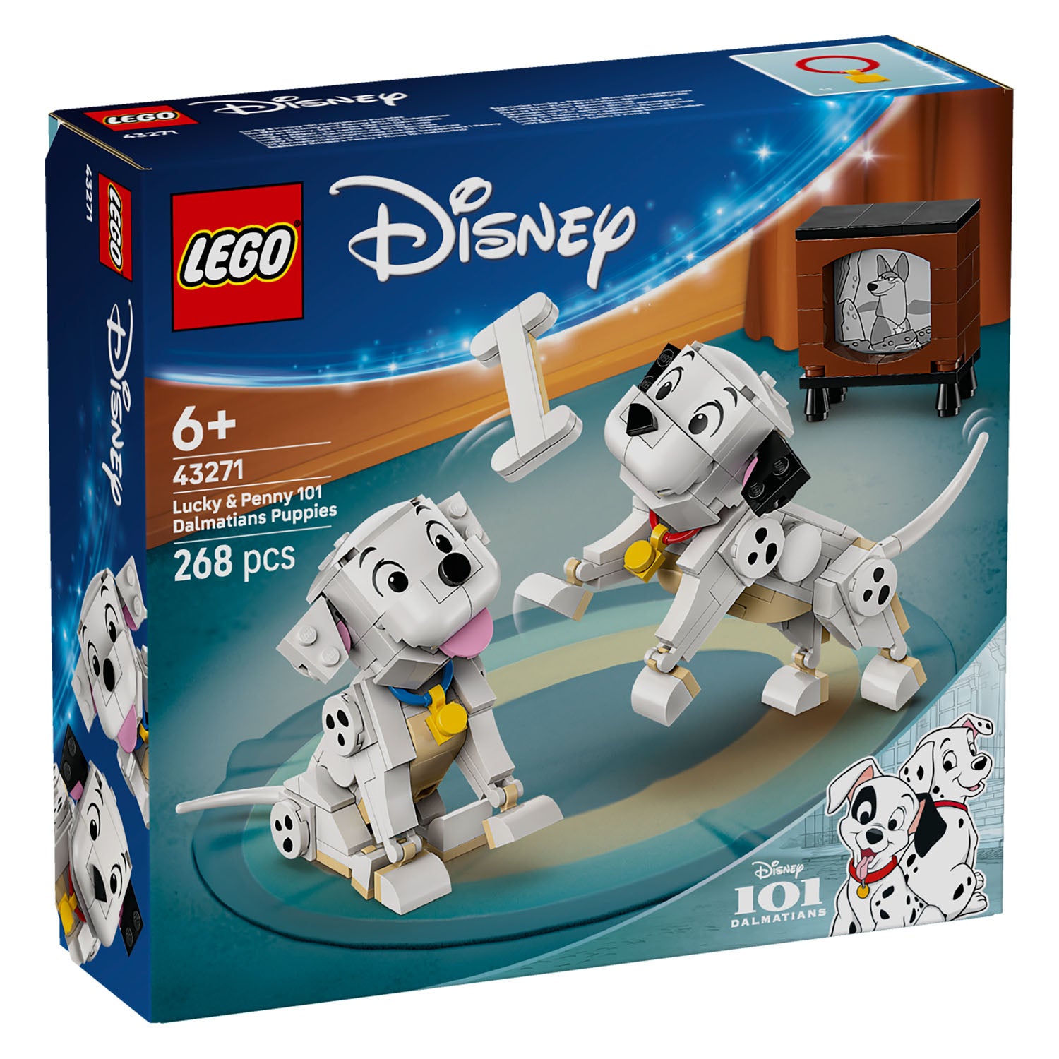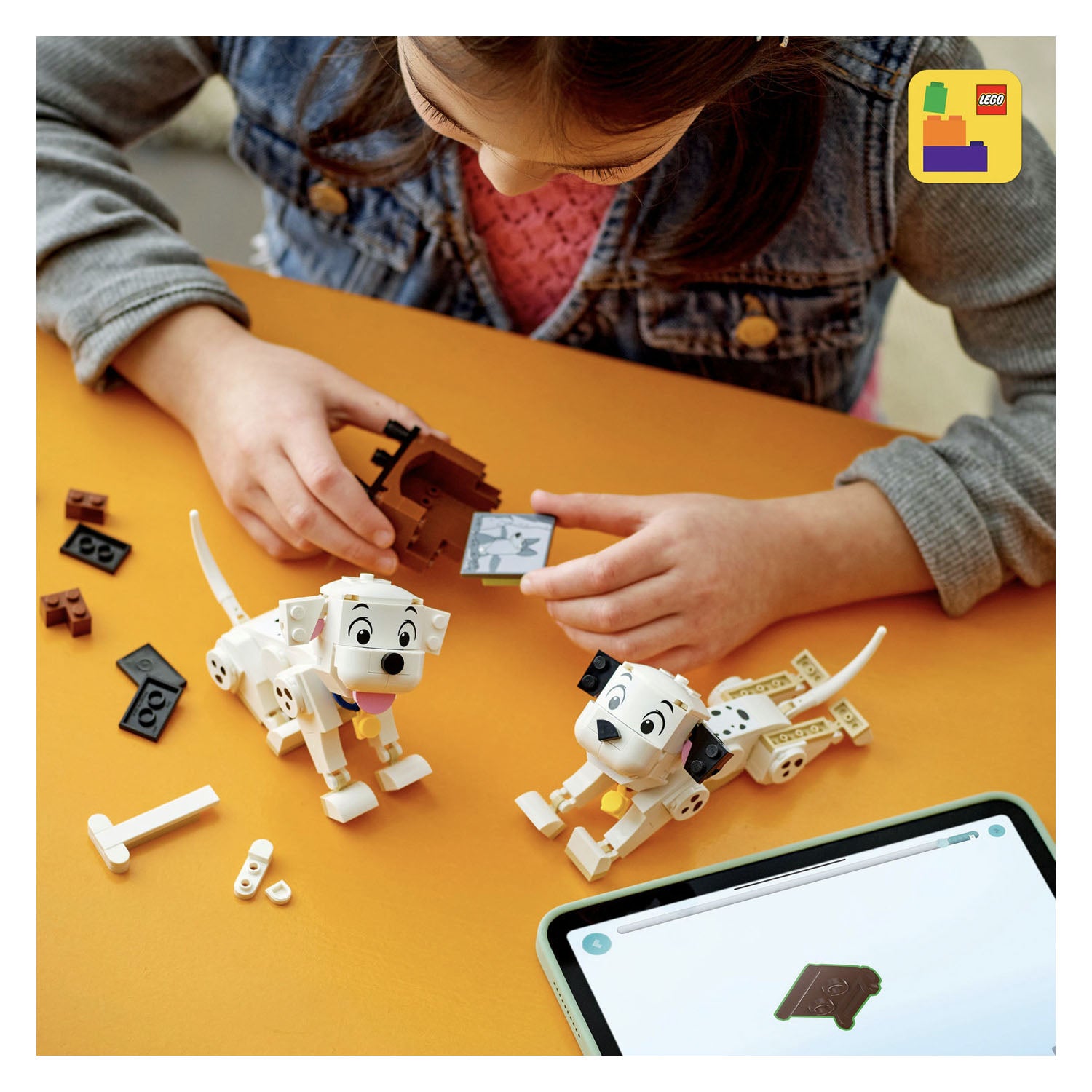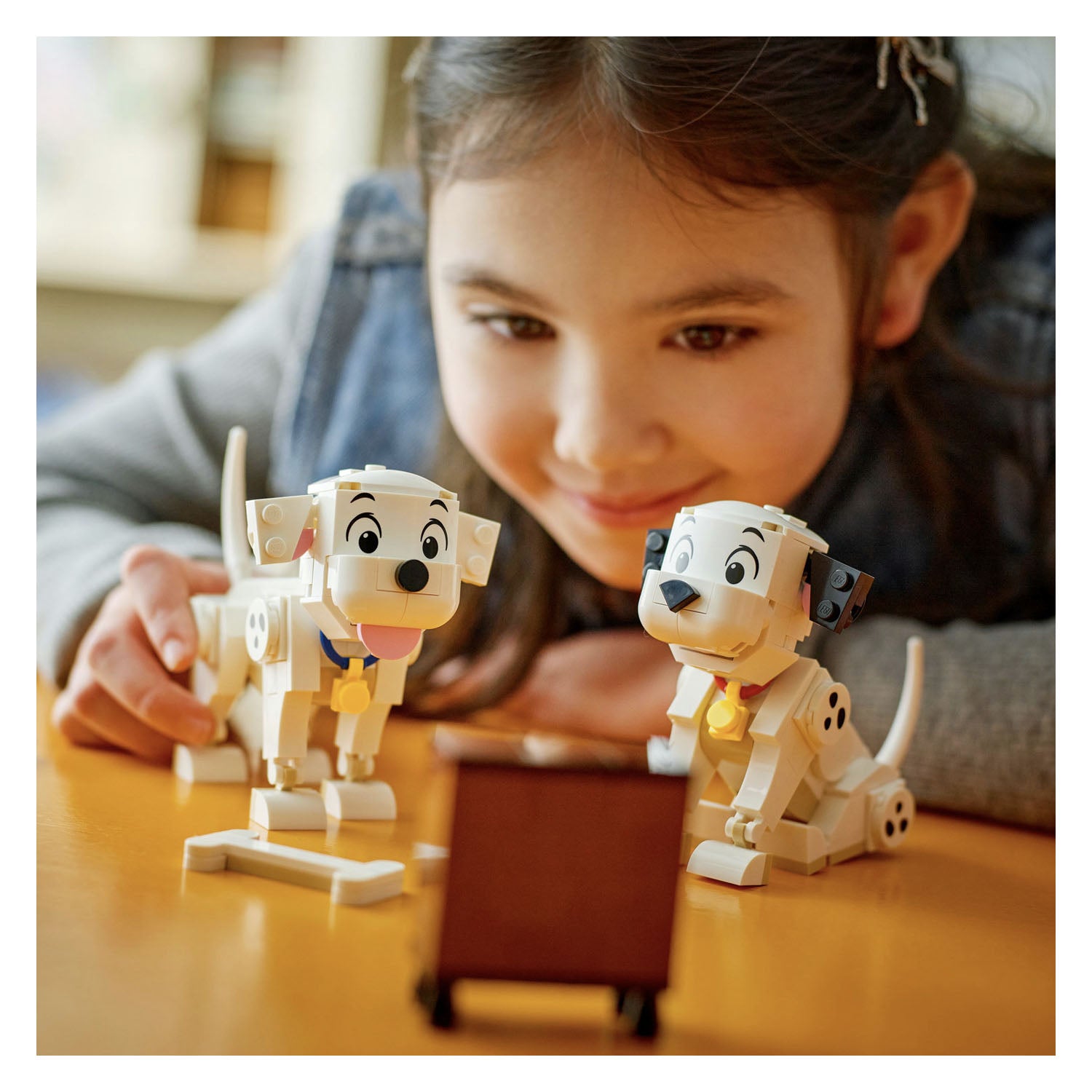 - Dalmatian puppies everywhere – This kids’ building toy features Lucky and Penny LEGO® ǀ Disney characters from the classic movie 101 Dalmatians, plus a brick-built bone and a small TV with screen