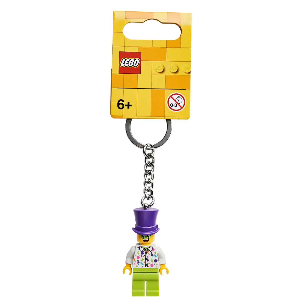 Surprise the birthday boy or girl with this fun LEGO® Iconic Birthday Guy Keyring (854066). A great little present to take to any LEGO fan’s birthday party or attach to a gift bag, it features a minifigure with a top hat and brightly colored clothing decoration attached to a durable metal chain and ring. This cute keyring can be fastened to a backpack or bag or used to keep keys together safely in a pocket or purse.